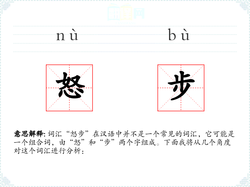 - 字面意思:“怒”通常表示愤怒、生气的情绪,“步”则指行走的动作。
