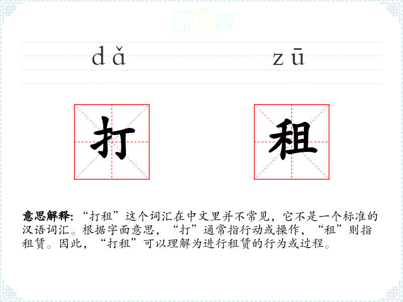 由于“打租”不是一个常用词汇,它在不同语言或文化中的对应词汇及其使用情况不详。