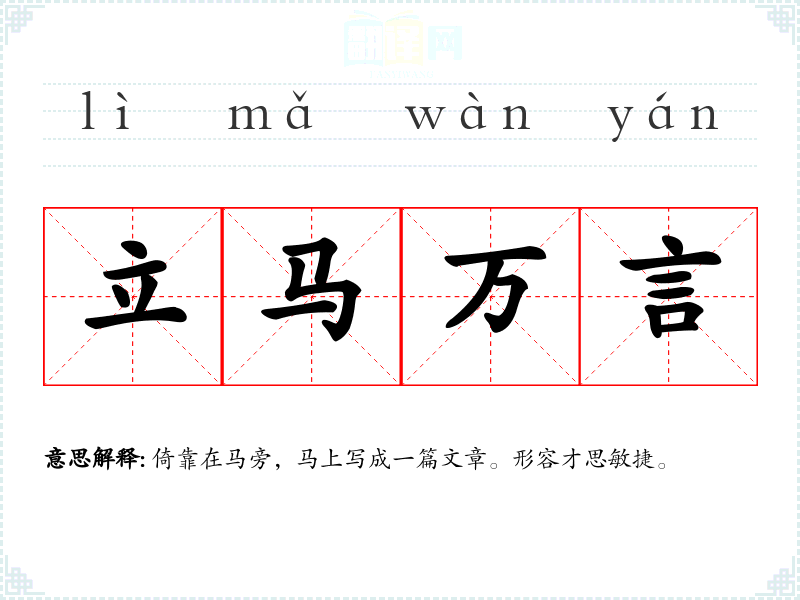 倚靠在马旁,马上写成一篇文章。形容才思敏捷。