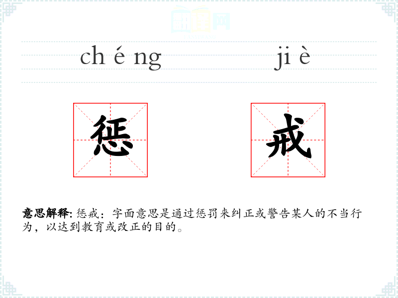 惩戒:字面意思是通过惩罚来纠正或警告某人的不当行为,以达到教育或改正的目的。