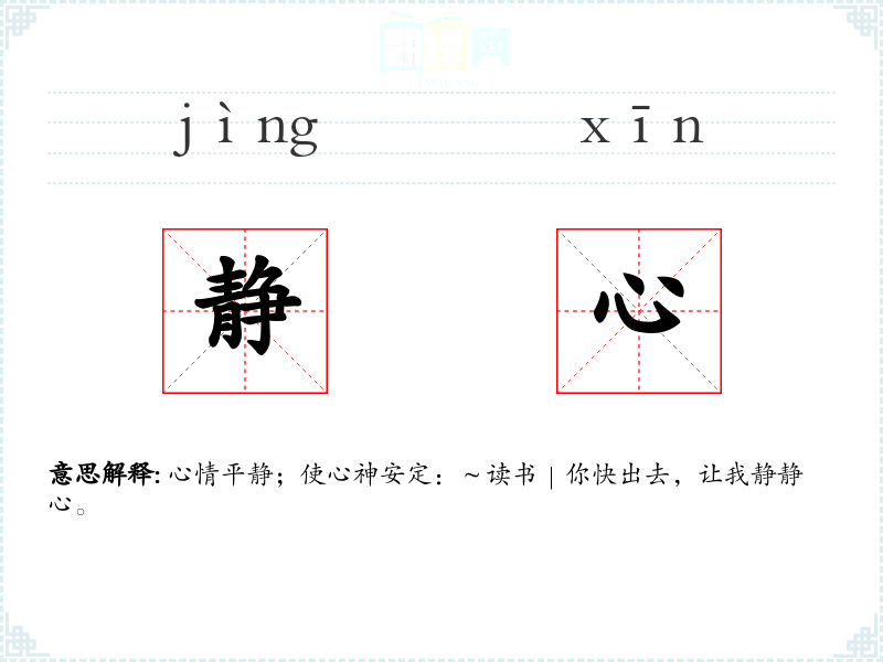 心情平静;使心神安定:~读书|你快出去,让我静静心。