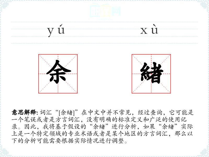 由于“余緖”不是一个标准词汇,它在不同语言或文化中的对应词汇可能不存在。