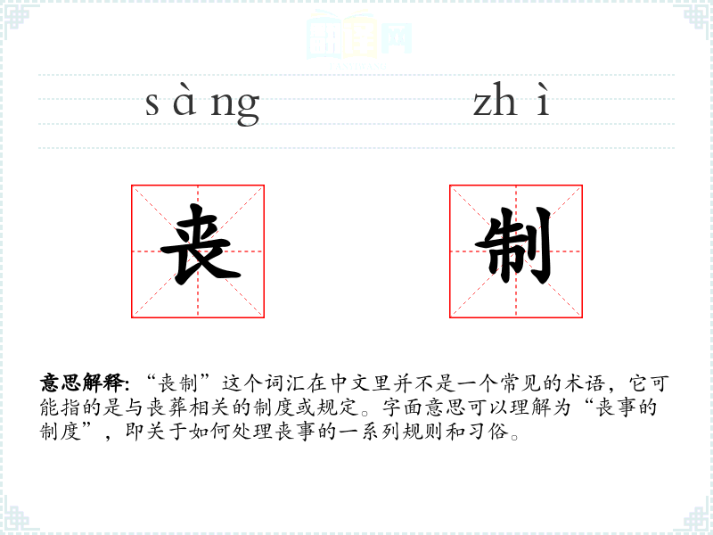 “丧制”这个词汇在中文里并不是一个常见的术语,它可能指的是与丧葬相关的制度或规定。字面意思可以理解为“丧事的制度”,即关于如何处理丧事的一系列规则和*俗。