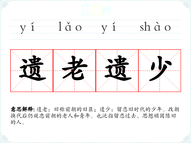 遗老:旧称前朝的旧臣;遗少:留恋旧时代的少年。