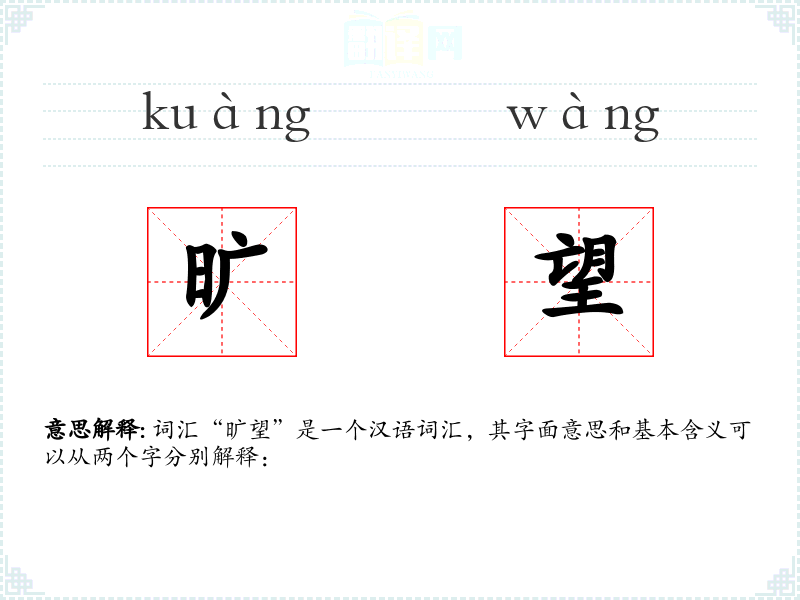 词汇“旷望”是一个汉语词汇,其字面意思和基本含义可以从两个字分别解释: