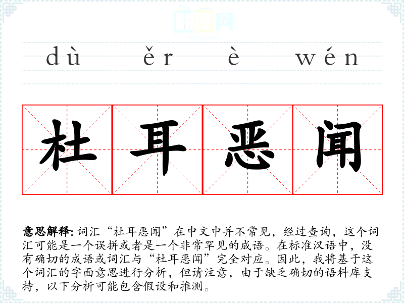 尽管“杜耳恶闻”不是一个标准词汇,通过对其字面意思的分析,我们可以理解它可能表达的含义和使用场景。在语言学习和表达中,了解和掌握词汇的正确用法是非常重要的。