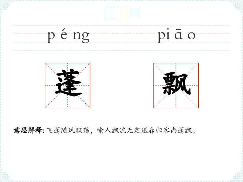 飘荡,喻人飘流无定送春归客尚蓬飘。