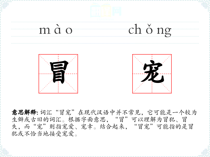 - 理解:“冒宠”是一个具有特定历史和文化背景的词汇,虽然在现代汉语中不常见,但它反映了特定社会环境下的行为和态度。