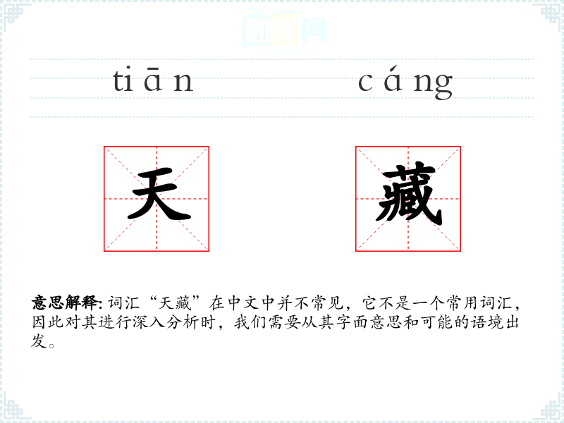 词汇“天藏”在中文中并不常见,它不是一个常用词汇,因此对其进行深入分析时,我们需要从其字面意思和可能的语境出发。