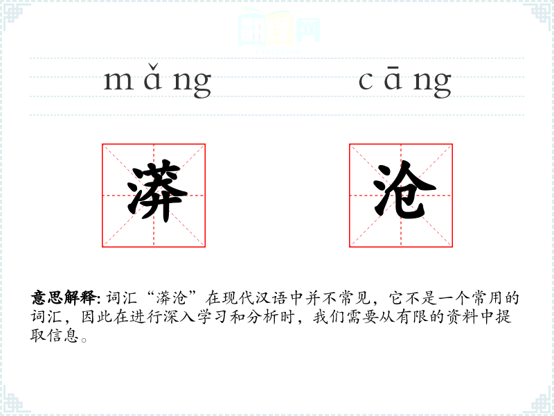 词汇“漭沧”在现代汉语中并不常见,它不是一个常用的词汇,因此在进行深入学习和分析时,我们需要从有限的资料中提取信息。