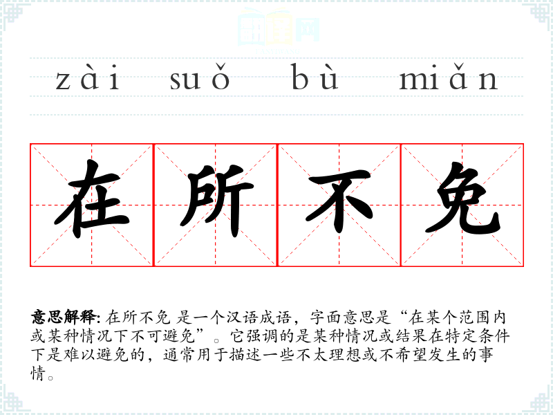 在所不免 是一个汉语成语,字面意思是“在某个范围内或某种情况下不可避免”。它强调的是某种情况或结果在特定条件下是难以避免的,通常用于描述一些不太理想或不希望发生的事情。