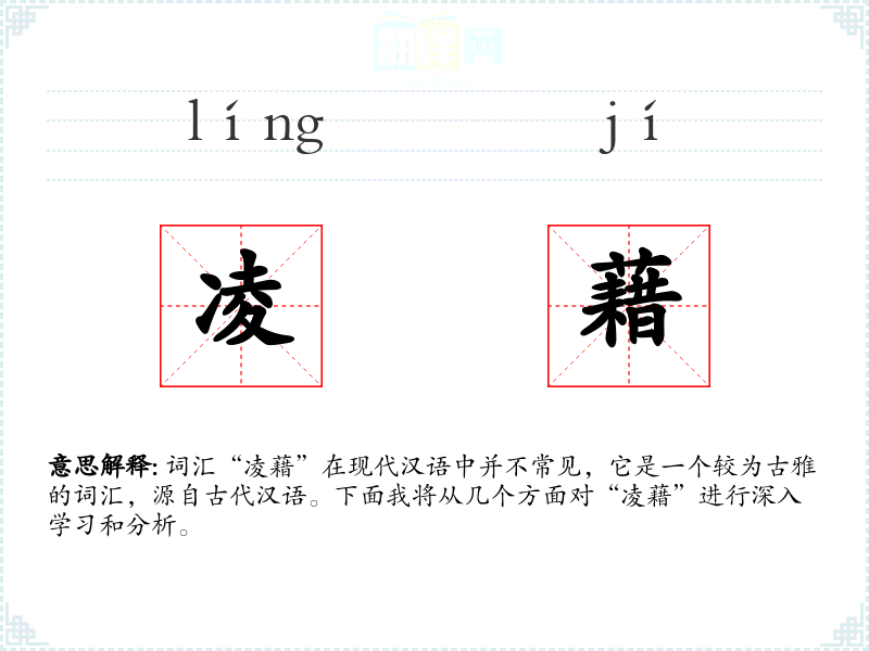 词汇“凌藉”在现代汉语中并不常见,它是一个较为古雅的词汇,源自古代汉语。下面我将从几个方面对“凌藉”进行深入学习和分析。