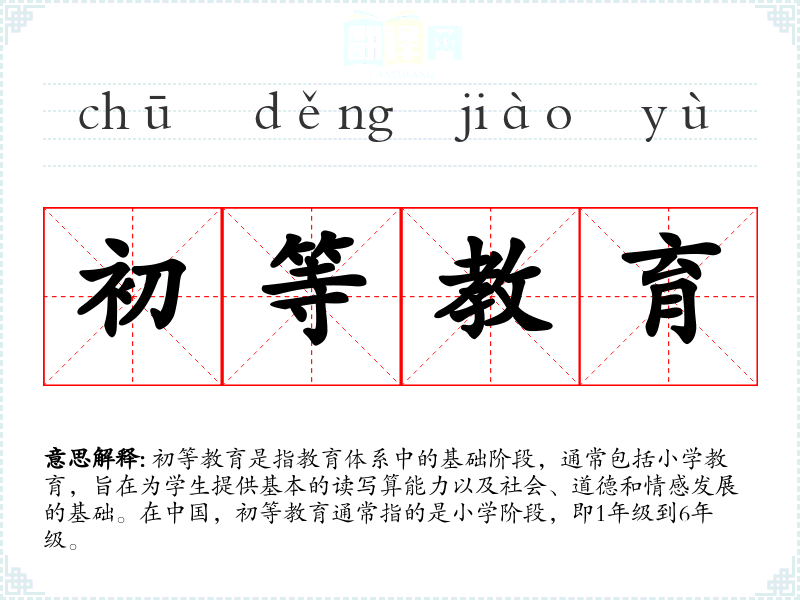 "初等教育"的意思解释、初等教育是什么意思由翻译网汉语词典查词提供。