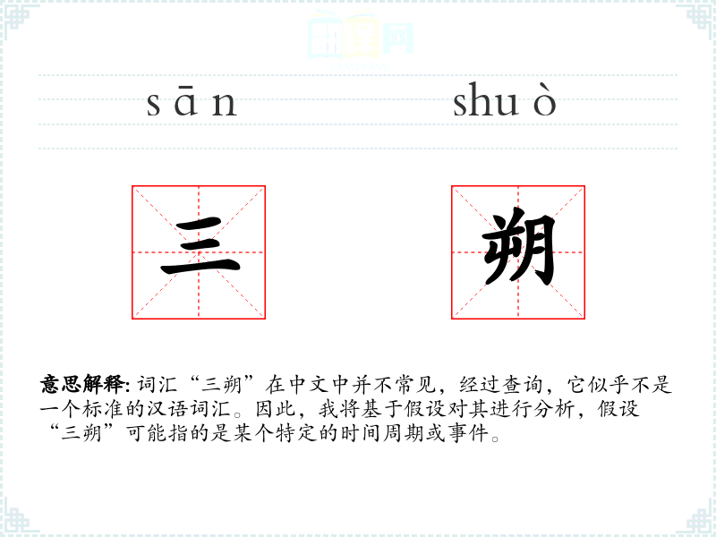 词汇“三朔”在中文中并不常见,经过查询,它似乎不是一个标准的汉语词汇。因此,我将基于假设对其进行分析,假设“三朔”可能指的是某个特定的时间周期或**。