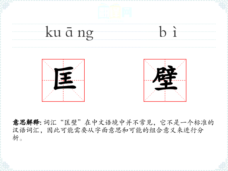 词汇“匡壁”在中文语境中并不常见,它不是一个标准的汉语词汇,因此可能需要从字面意思和可能的组合意义来进行分析。