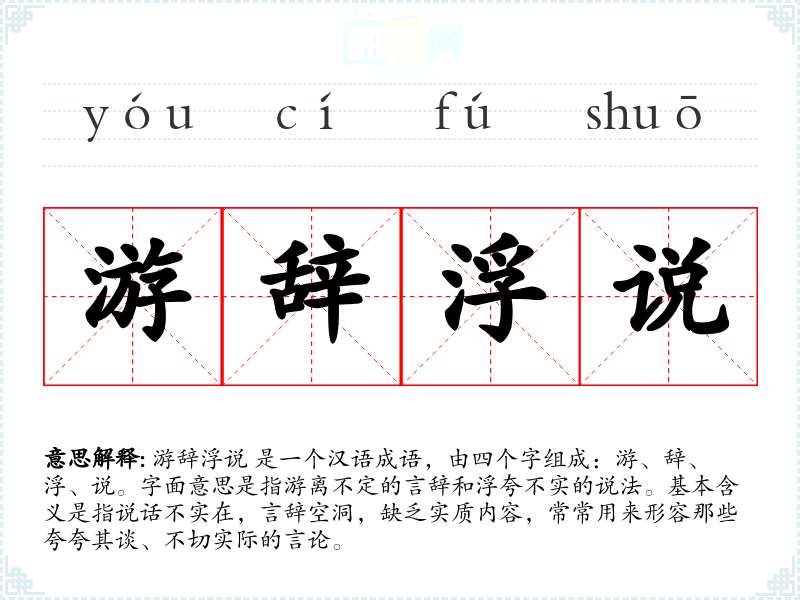 "游辞浮说"的意思解释、游辞浮说是什么意思由翻译网汉语词典查词提供。