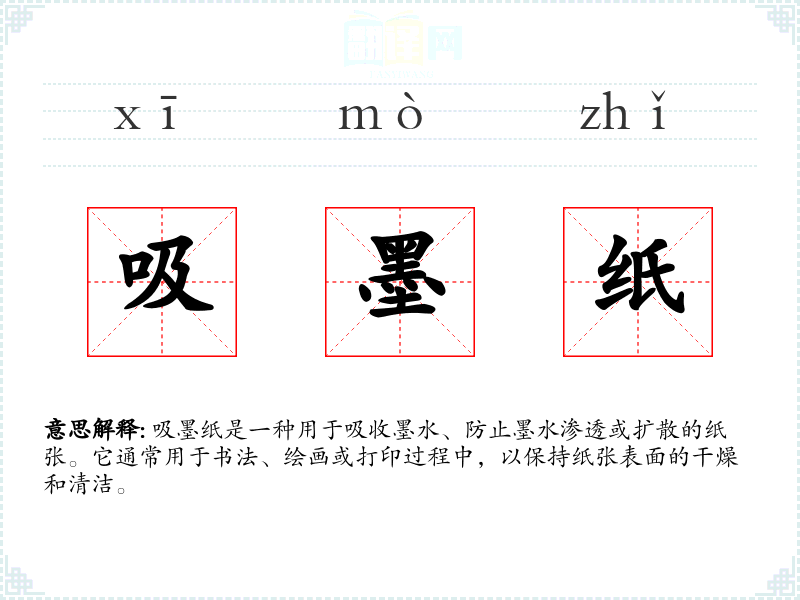 "吸墨纸"的意思解释、吸墨纸是什么意思由翻译网汉语词典查词提供。