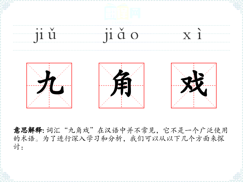 词汇“九角戏”在汉语中并不常见,它不是一个广泛使用的术语。为了进行深入学习和分析,我们可以从以下几个方面来探讨: