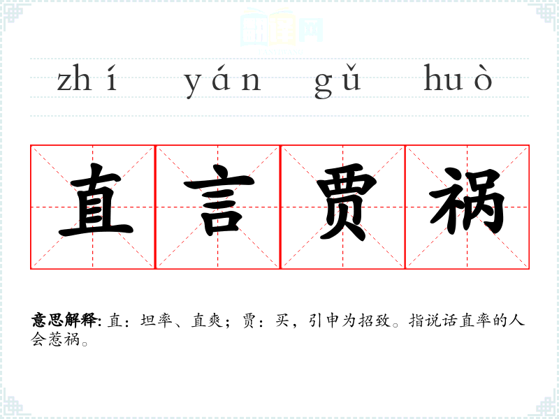 直:坦率、直爽;贾:买,引申为招致。指说话直率的人会惹祸。