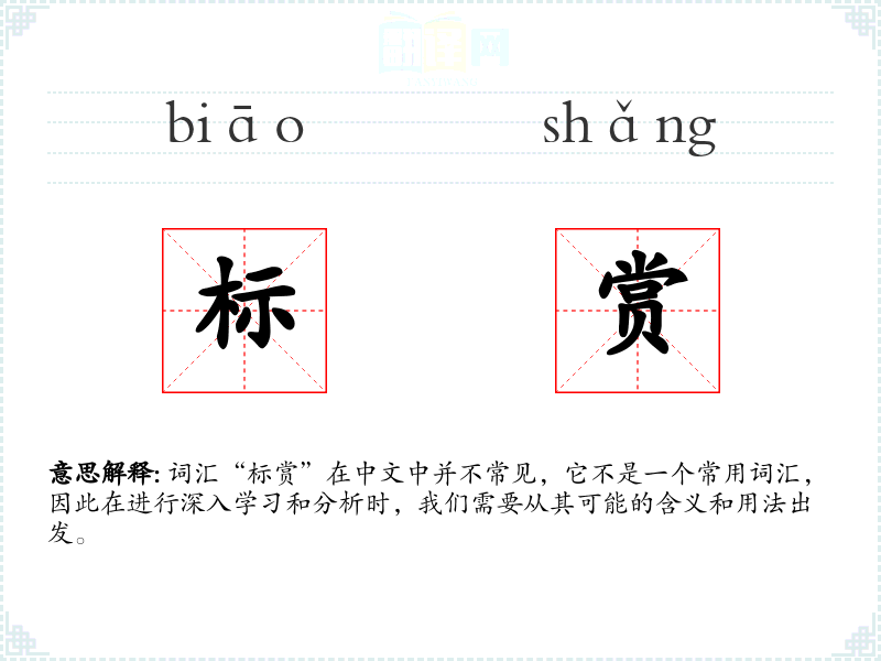 词汇“标赏”在中文中并不常见,它不是一个常用词汇,因此在进行深入学*和分析时,我们需要从其可能的含义和用法出发。