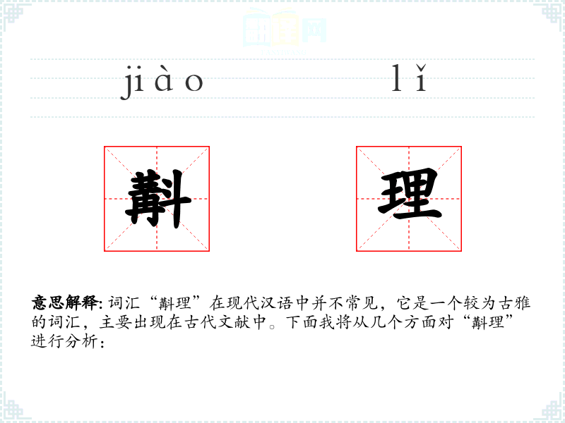 词汇“斠理”在现代汉语中并不常见,它是一个较为古雅的词汇,主要出现在古代文献中。下面我将从几个方面对“斠理”进行分析: