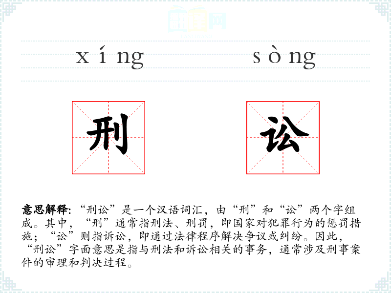 “刑讼”是一个汉语词汇,由“刑”和“讼”两个字组成。其中,“刑”通常指刑法、刑罚,即国家对犯罪行为的惩罚措施;“讼”则指诉讼,即通过法律程序解决争议或纠纷。因此,“刑讼”字面意思是指与刑法和诉讼相关的事务,通常涉及刑事案件的审理和判决过程。