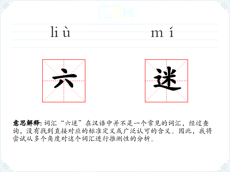 由于“六迷”不是一个标准词汇,我们可以尝试从字面意思进行解释: