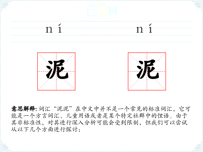 "泥泥"的意思解释、泥泥是什么意思由翻译网汉语词典查词提供。