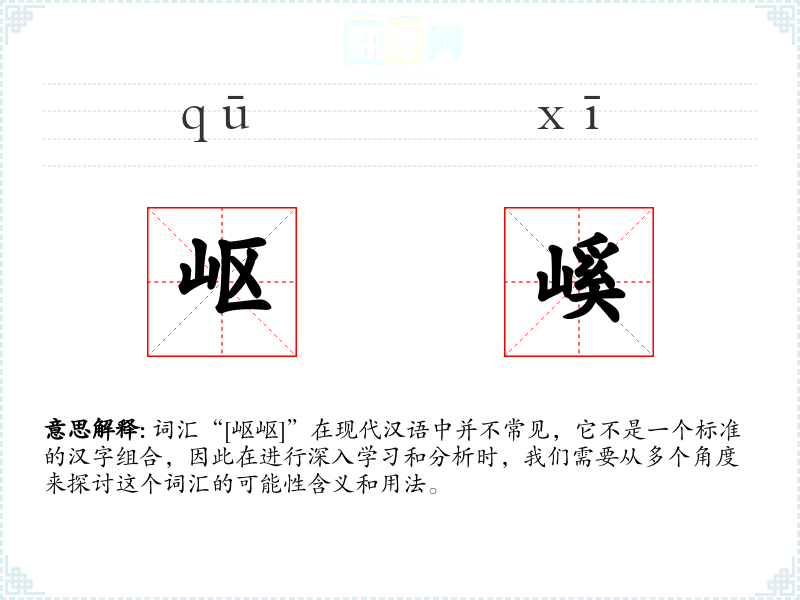 词汇“[岖岖]”在现代汉语中并不常见,它不是一个标准的汉字组合,因此在进行深入学*和分析时,我们需要从多个角度来探讨这个词汇的可能性含义和用法。