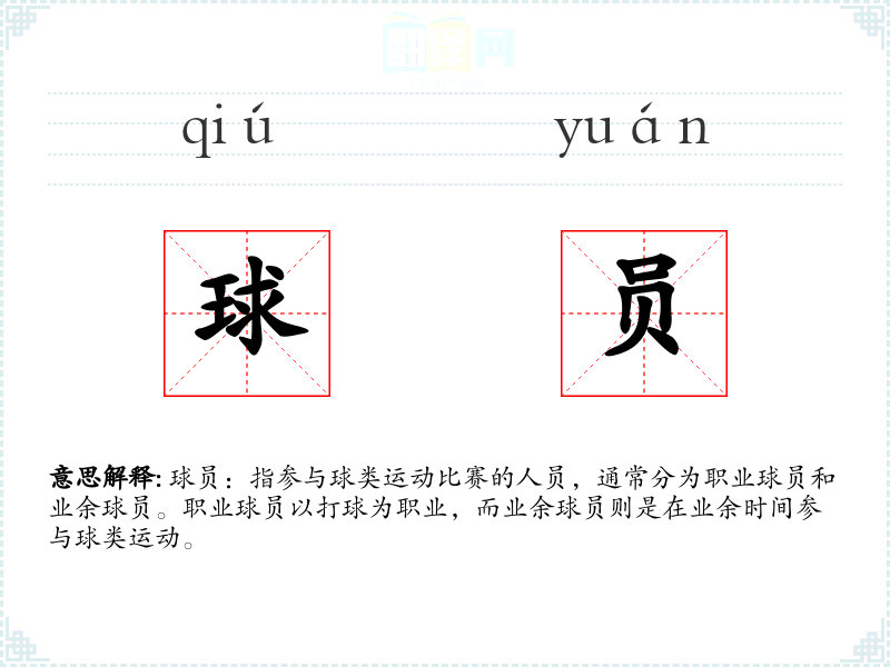 "球员"的意思解释、球员是什么意思由翻译网汉语词典查词提供。