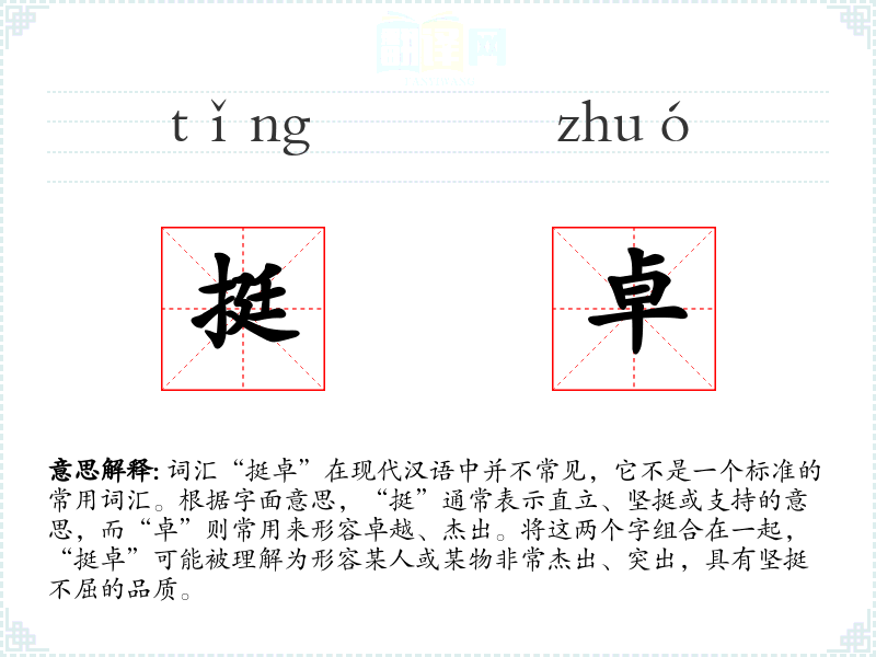 在特定的文化或社会背景中,“挺卓”可能被用来形容那些在逆境中依然保持优秀品质的人或事物,强调其坚韧和卓越。
