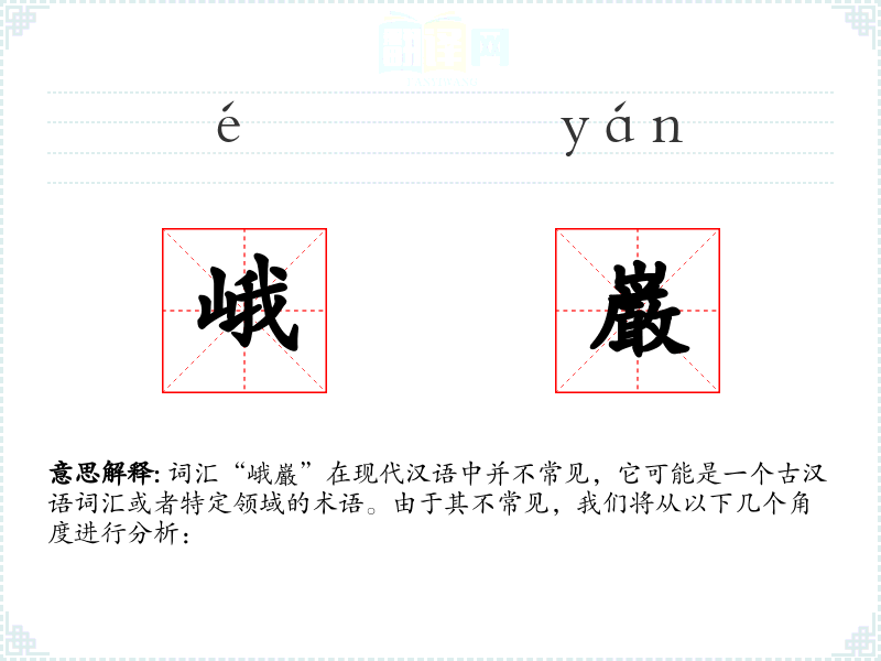 词汇“峨巌”在现代汉语中并不常见,它可能是一个古汉语词汇或者特定领域的术语。由于其不常见,我们将从以下几个角度进行分析: