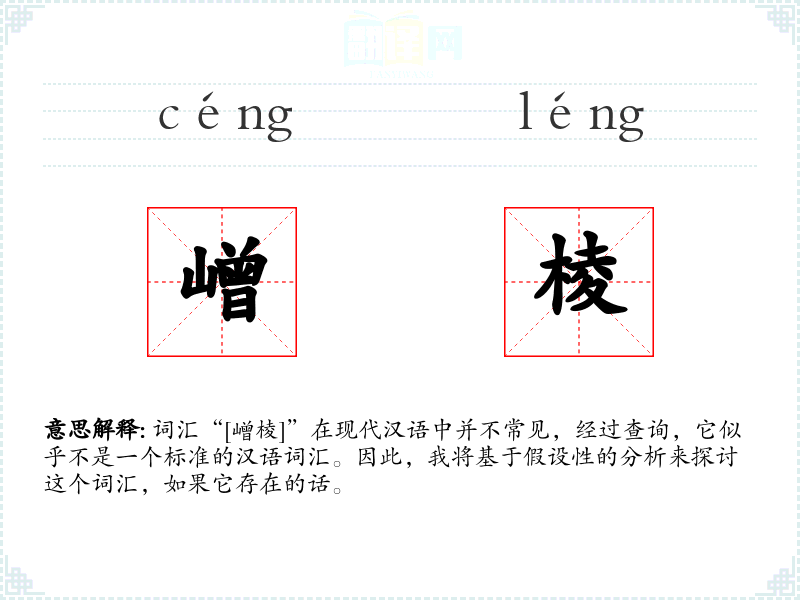 词汇“[嶒棱]”在现代汉语中并不常见,经过查询,它似乎不是一个标准的汉语词汇。因此,我将基于假设性的分析来探讨这个词汇,如果它存在的话。