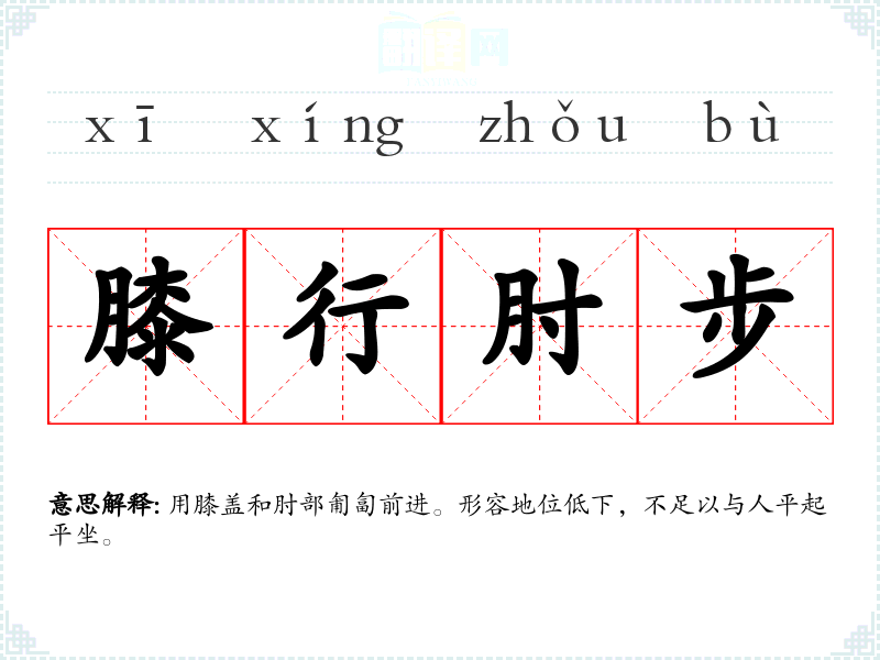 用膝盖和肘部匍匐前进。形容地位低下,不足以与人