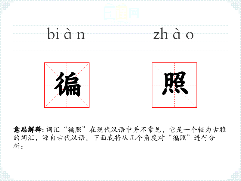 词汇“徧照”在现代汉语中并不常见,它是一个较为古雅的词汇,源自古代汉语。下面我将从几个角度对“徧照”进行分析: