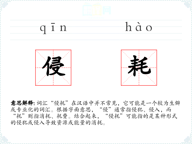 “侵耗”的基本含义可能是指通过不正当或不合法的手段侵入或占用,导致某种资源或能量的减少或损失。