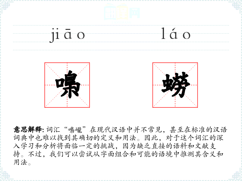对于“嘄巄”这个词汇的深入学习和分析,我们发现它在现代汉语中并不常见,缺乏具体的语料和文献支持。因此,我们只能从字面组合和可能的语境中推测其含义和用法。在语言学习和表达中,了解和掌握常用词汇更为重要,而这类不常见的词汇可能在特定的文学或学术研究中才有其价值。