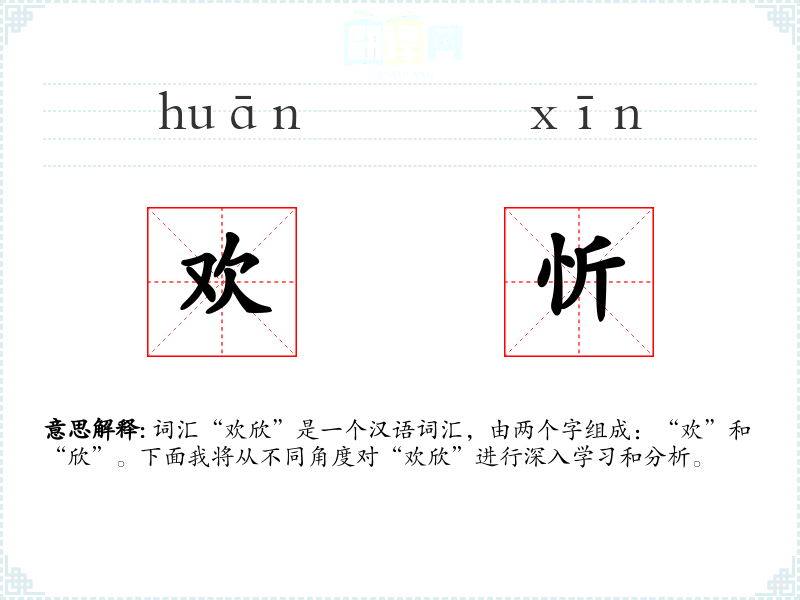 “欢欣”是一个富有情感色彩的词汇,能够准确地表达强烈的喜悦和快乐。在语言学和表达中,掌握这样的词汇有助于丰富表达方式,增强情感的传递。通过深入学和分析,“欢欣”不仅是一个词汇,更是一种积极的生活态度。