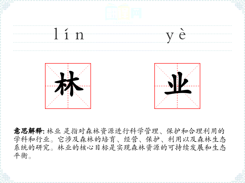 林业是一个多面向的词汇,涉及科学、经济、环境和社会等多个领域。它不仅是一个专业术语,也是连接人与自然的重要桥梁。在语言学习和表达中,理解和正确使用林业这一词汇,有助于我们更好地认识和保护自然环境。