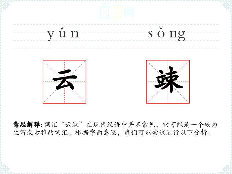词汇“云竦”在现代汉语中并不常见,它可能是一个较为生僻或古雅的词汇。根据字面意思,我们可以尝试进行以下分析: