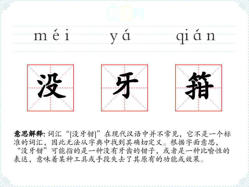 "没牙箝"的意思解释、没牙箝是什么意思由翻译网汉语词典查词提供。