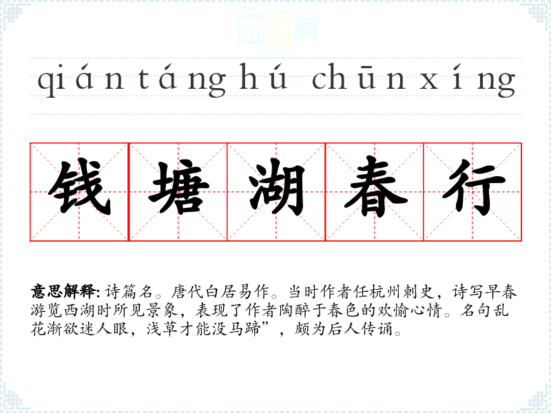 "钱塘湖春行"的意思解释、钱塘湖春行是什么意思由翻译网汉语词典查词提供。