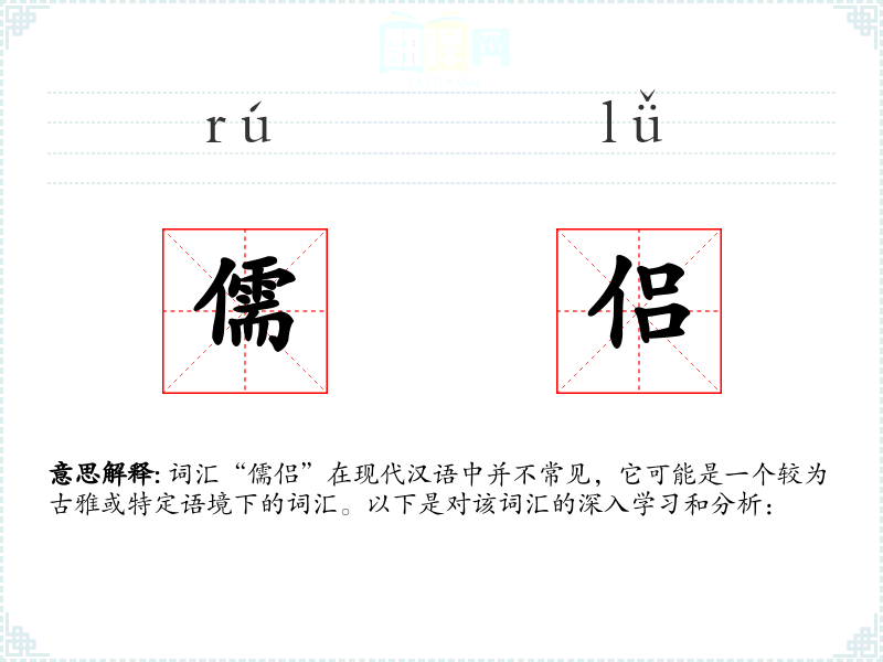 词汇“儒侣”在现代汉语中并不常见,它可能是一个较为古雅或特定语境下的词汇。以下是对该词汇的深入学*和分析: