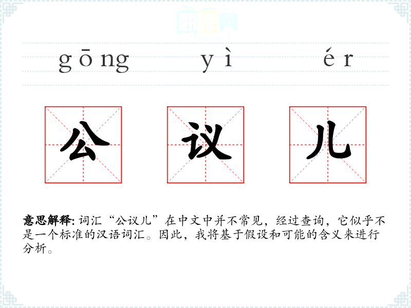 词汇“公议儿”在中文中并不常见,经过查询,它似乎不是一个标准的汉语词汇。因此,我将基于假设和可能的含义来进行分析。