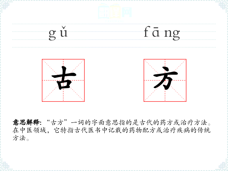 “古方”一词的字面意思指的是古代的药方或治疗方法。在中医领域,它特指古代医书中记载的药物配方或治疗疾病的传统方法。