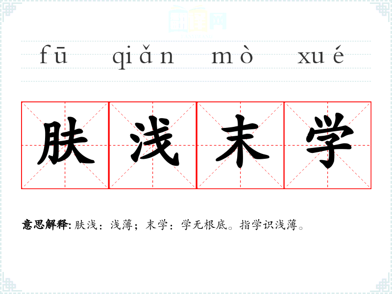 肤浅:浅薄;末学:学无根底。指学识浅薄。