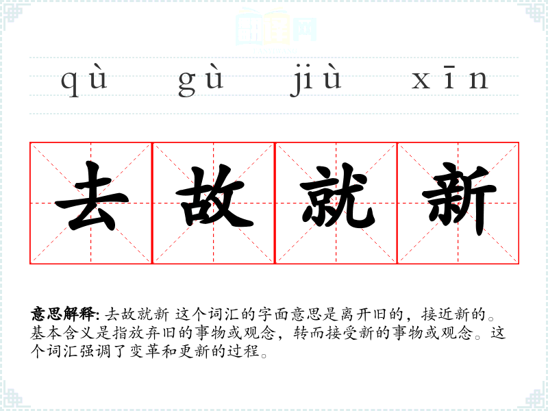 去故就新 这个词汇对我来说是一个重要的概念,它提醒我保持开放和学的态度,不断适应变化。在语言学和表达中,这个词汇帮助我理解和传达变革和更新的重要性。