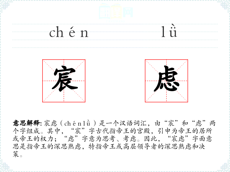 “宸”字源自古代对帝王宫殿的称呼,而“虑”字则一直指思考。随着时间的推移,“宸虑”逐渐固定为一个词,专门用来描述帝王或高层领导者的深思熟虑。