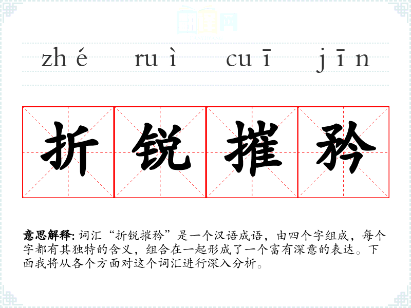 词汇“折锐摧矜”是一个汉语成语,由四个字组成,每个字都有其独特的含义,组合在一起形成了一个富有深意的表达。下面我将从各个方面对这个词汇进行深入分析。