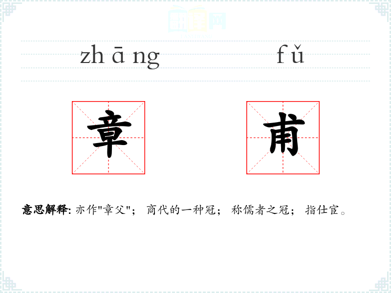 亦作"章父"; 商代的一种冠; 称儒者之冠; 指仕宦。